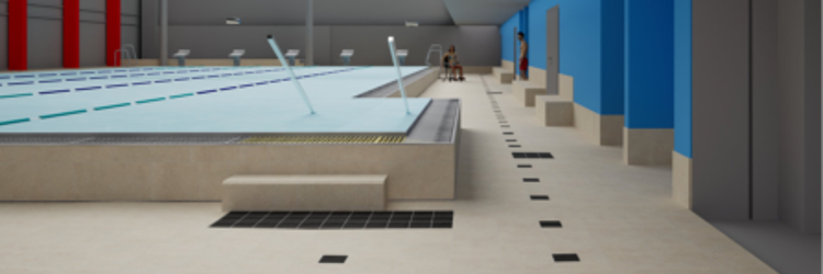 Saniert werden soll zudem das Schwimmerbecken mit einer Edelstahlverkleidung der Beckeninnenwände. Hierzu wird nun das Vergabeverfahren eingeleitet. Mit der Sanierung werden die Beckenwände zugleich über die Ebene des Umlaufs gezogen (siehe Abb.), so dass gleichsam ein „erhabenes“ Becken entsteht. Diese Konstruktion wird nicht nur atmosphärisch eine Aufwertung, sondern auch eine deutlich verbesserte Barrierefreiheit beim Zugang zum Becken bedeuten. Der Verwaltungsrat hat die Stadtbetriebe beauftragt, zu prüfen, ob eine entsprechende Sanierung auch des Nichtschwimmerbeckens möglich ist.