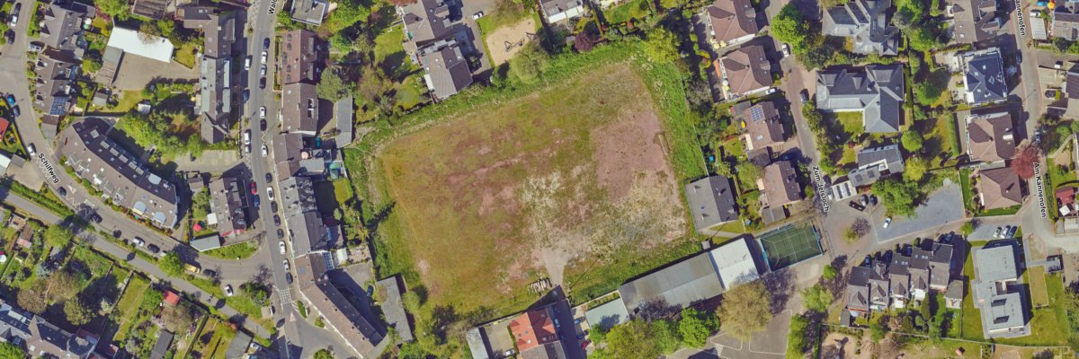 Noch bietet der Sportplatz Waldstraße einen traurigen Anblick. Doch das wird sich ändern. Die Planungen der von der Stadt mit der Bebauung der Fläche beauftragten Stadtbetriebe nehmen Konturen an. Vorgesehen sind fünf dreigeschossige Wohnhäuser mit insgesamt 3.750 m² Wohnfläche und ca. 60 Wohneinheiten. Die Hälfte davon soll später als geförderter Wohnraum angeboten werden. Ähnlich dem Haufeld werden auch hier die Wohngebäude mit viel Grün und parkähnlichen Wegen miteinander verbunden und Flächen zum Spielen, Bewegen und Verweilen geschaffen.